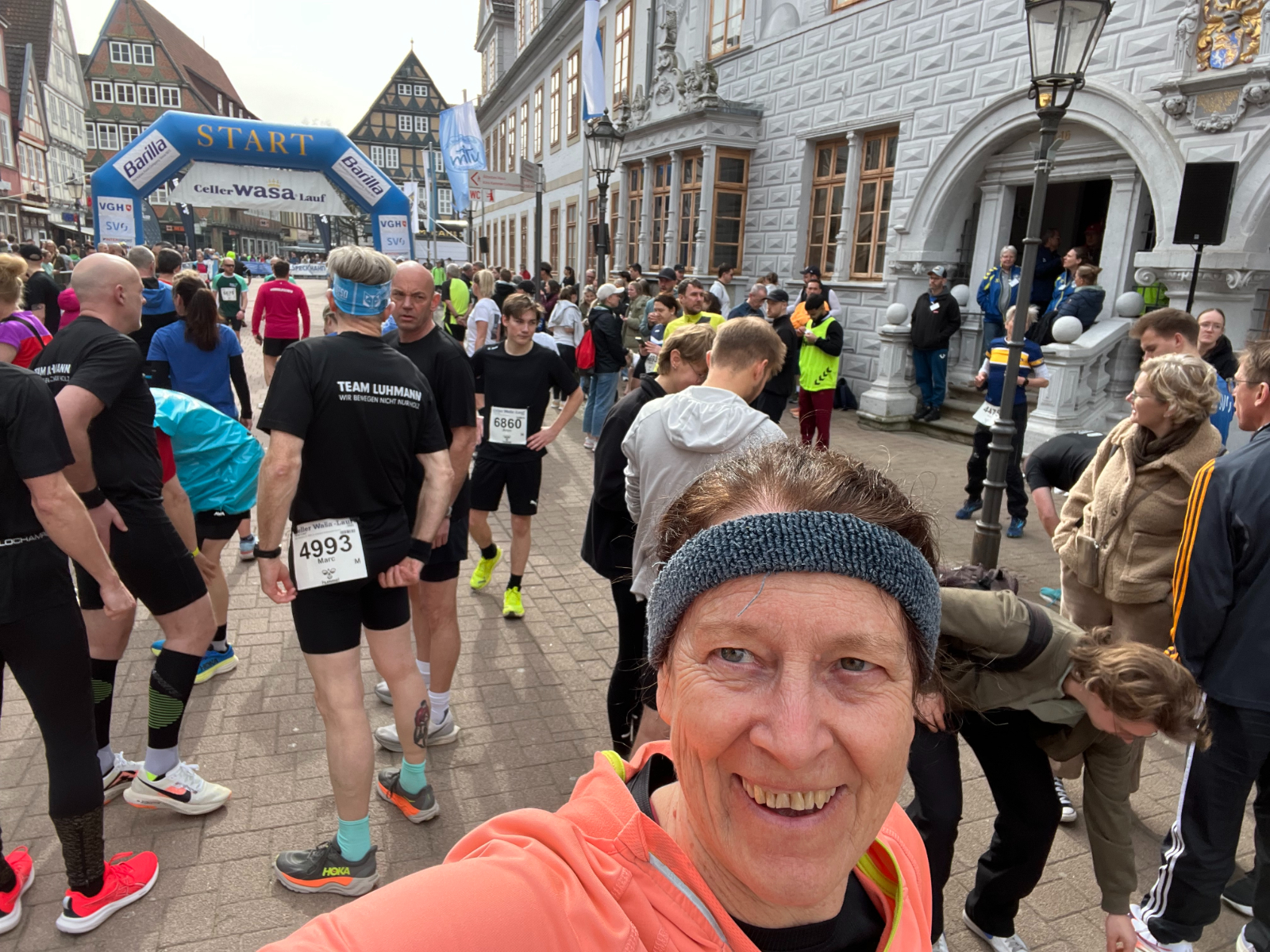 In Celle angekommen lagen schon die Endorphine in der Luft: die vielen "Raketen" scharrten schon mit den Hufen, was bei mir wiederum zu Verunsicherung führte - "10km , wer hat mich bloß angemeldet?"