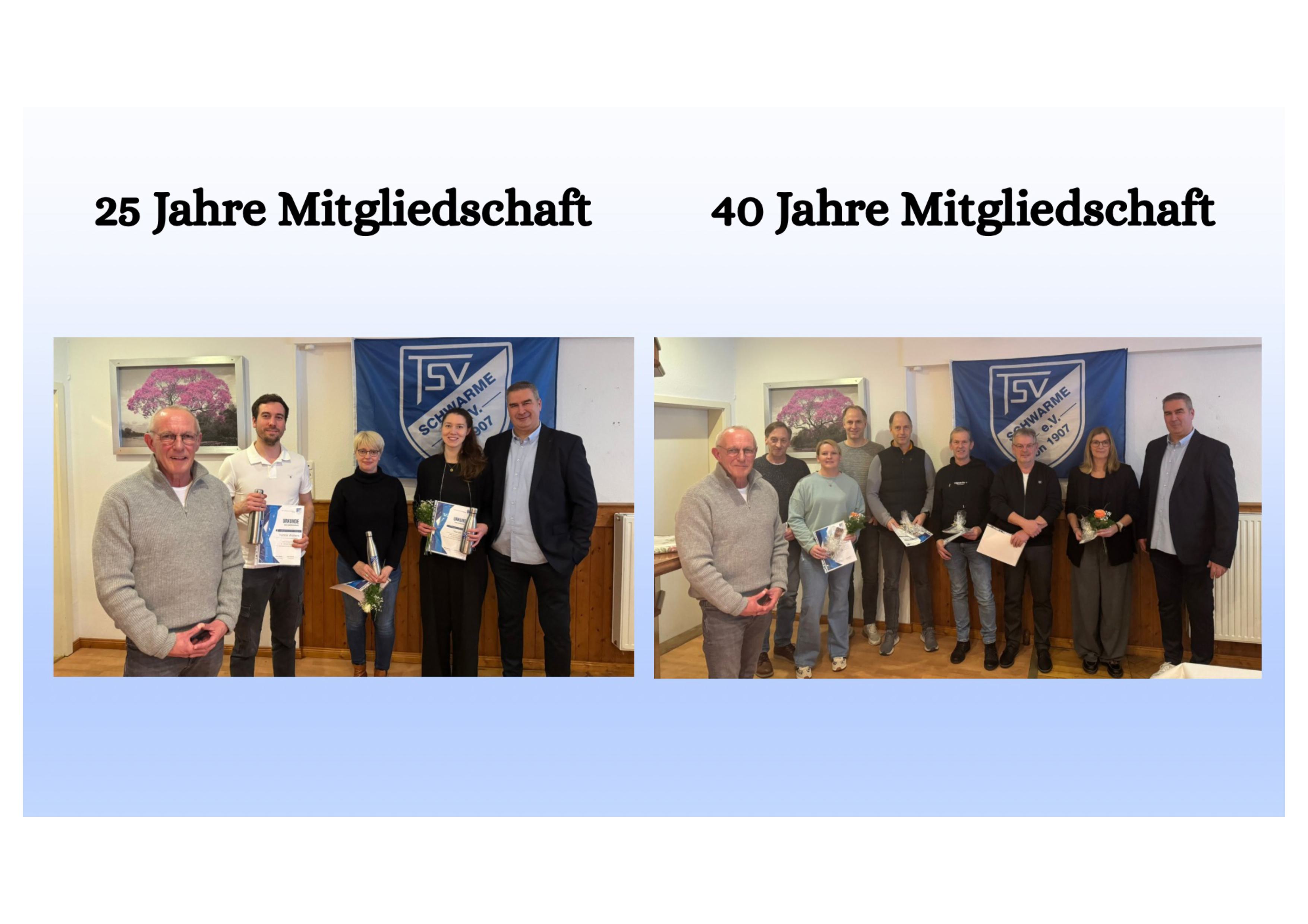 Rainer Asendorf (20 Jahre Sozialwart), Kerstin zum Hingst (25 Jahre Spartenleiterin), Ralf Poyda (34 Jahre Spartenleiter) sowie Oliver Hüneke für 15 Jahre Vorstandstätigkeit.